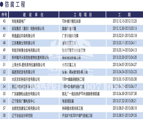 - 宏順建設(shè)核心技術(shù) 宏順建設(shè)專業(yè)防腐各種水塔防腐,儲(chǔ)油罐防腐,管道防腐,吊機(jī)防腐,龍門(mén)吊防腐,水泥筒倉(cāng)防腐工程,有多年的成功經(jīng)驗(yàn),施工業(yè)績(jī)遍布全國(guó)各地... 了解詳情